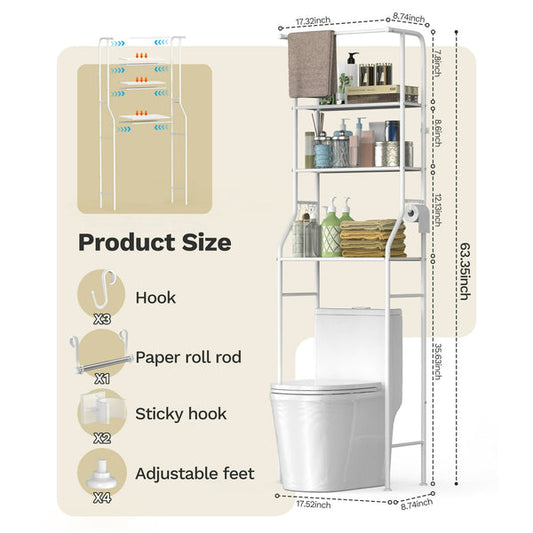 Riousery 3-Tier Over-the-Toilet Storage Rack, Bathroom Organizer Shelf, Freestanding Above-Toilet Stand for Bathroom & Laundry, White