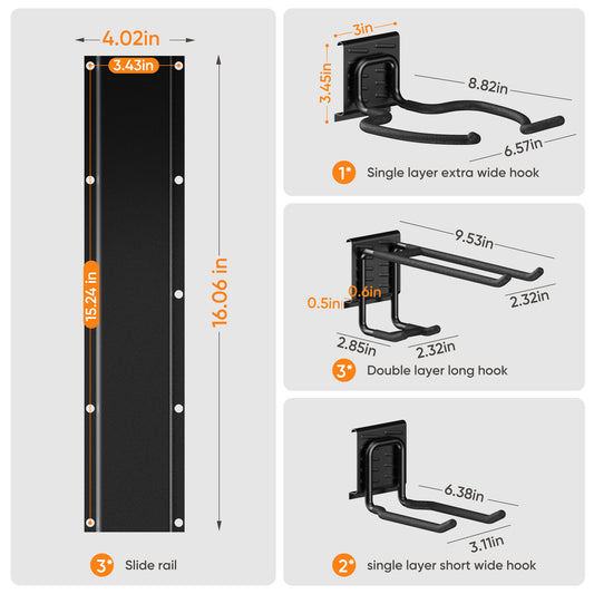 Riousery Garage Tool Organizer Wall Mount with 6 Versatile Hooks, Heavy Duty Metal Rack for Customizable Storage in Garage, Yard, and Garden