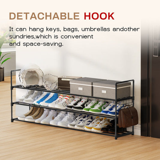 Riousery 3-Tier 56.7 Inch Shoe Rack for Entryway Closet, Shoe Storage Organizer Hold Up 25 Pairs Shoe, Extra Length Shoe Shelf, Black