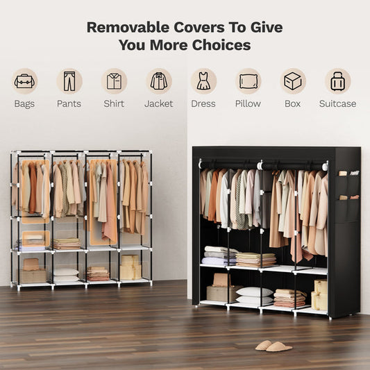 Riousery 4-Column Portable Closet Organizer, Heavy-Duty 16mm Tubes, Waterproof Non-Woven Fabric Cover, Black