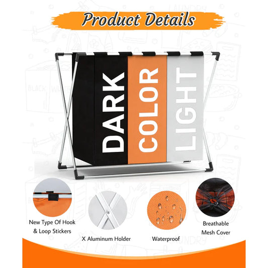 Riousery Laundry Basket Clothes Hamper Sorter 3 Section, 135 L Storage Collapsible X Frame,Black