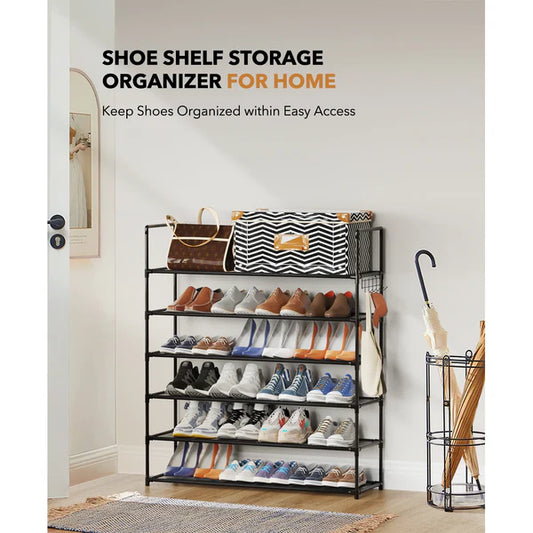 Riousery 6-Tier Extra Length 56.7 Inch Shoe Rack for Entryway, Shoe Storage Organizer Hold Up 50 Pairs Shoe, Long Shoe Shelf, Black