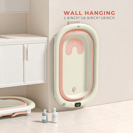 Rupoun Foldable Baby Bathtubs, Collapsible Bathtub for Infant Newborn Boys and Girls, Portable, Plastic, Pink