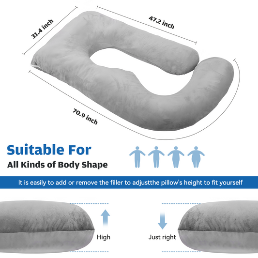 RUPOUN Pregnancy Pillow U Shaped Full Body Soft Maternity Pillow 70 Inch with Removable Velvet Cover