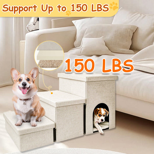 Tolobeve 3 Step Dog Stairs with Storage for High Bed 17.5'' H, Foldable Pet Stair for Small Medium or Large Dogs