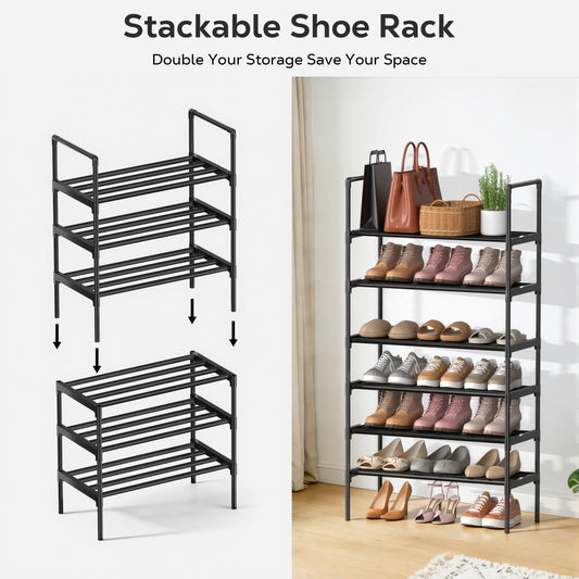 WEENEED 3-Tier All-Steel Shoe Rack, Stackable & Adjustable Metal Shoe Organizer for Entryway, Closet, or Bedroom, Heavy-Duty Storage Shelf for Boots and Heels