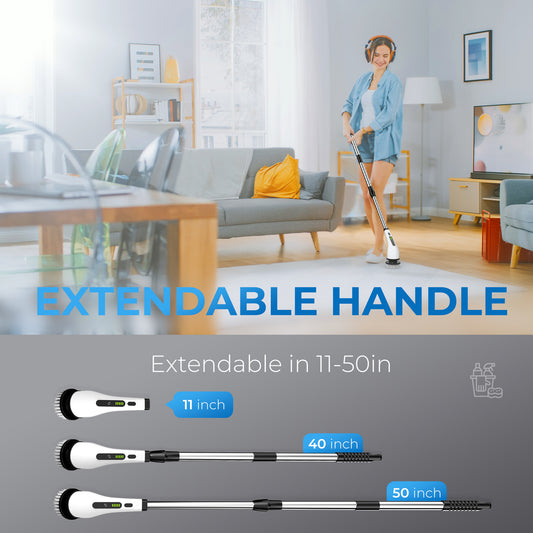 BIMZUC Electric Spin Scrubber, Cordless Cleaning Brush, 7 Replaceable Heads, Extendable Handle, White