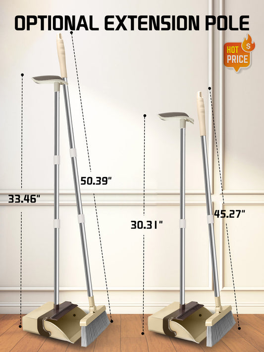 BIMZUC Broom and Dustpan Set,50.3" Broom and Dust Pan Combo,Standing Dust Pan with Long Handle (Brown)