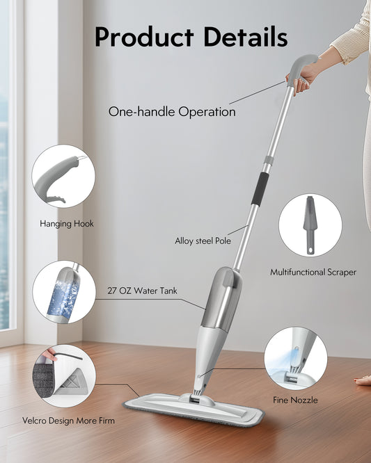 BIMZUC Spray Mop for Floor Cleaning with 3 Washable Pads-Wet Dry Microfiber Mop with 27 oz Refillable Bottle, Gray - New