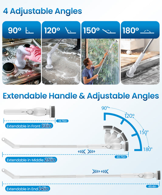 BIMZUC Electric Spin Scrubber, Cordless Cleaning Brush,8 Replaceable Heads, 4 Adjustable Angles, Remote Switch, White