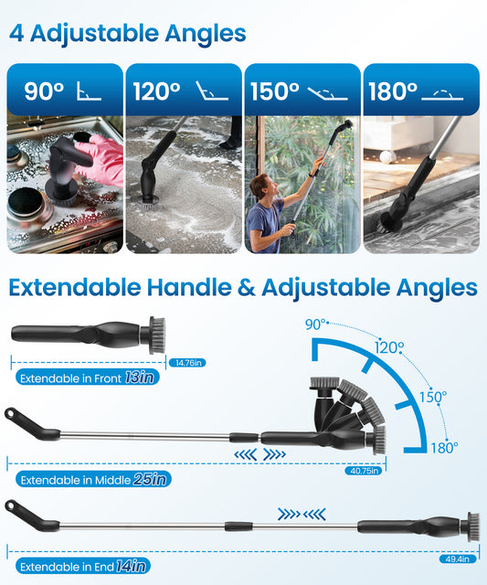 BIMZUC Electric Spin Scrubber, Cordless Cleaning Brush,8 Replaceable Heads, 4 Adjustable Angles, Extendable Handle, Black