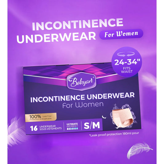 Bokyan Adult Incontinence Underwear for Women,Postpartum Bladder Leak Underwear,Disposable,S/M,32 Ct