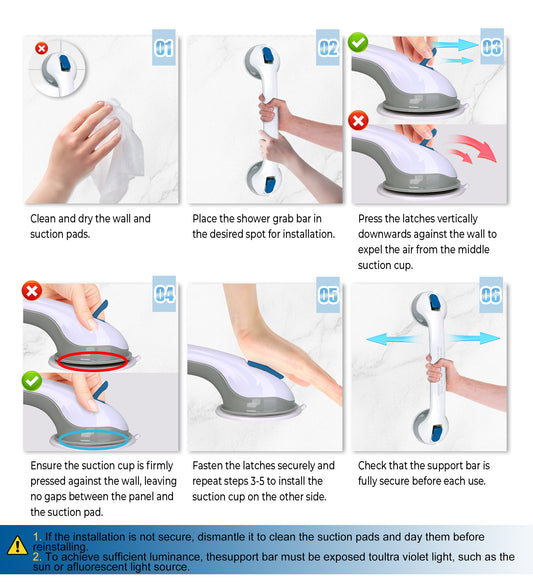 Hodvit 2 Piece 16" Shower Grab Bar, Glow-in-the-Dark Shower Handle with Power Suction Cup Grip for Seniors, Weight Capacity 200 lbs,New