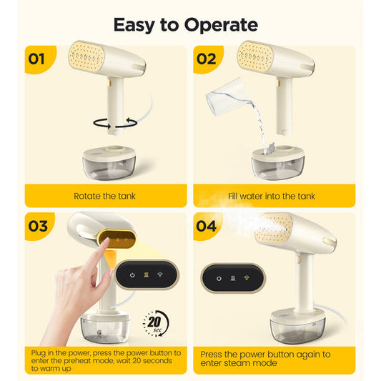 FUMMUX Fabric Steamer, 20s heating up, 12oz water tank, portable garment steamer for clothes, wrinkle remover, Beige