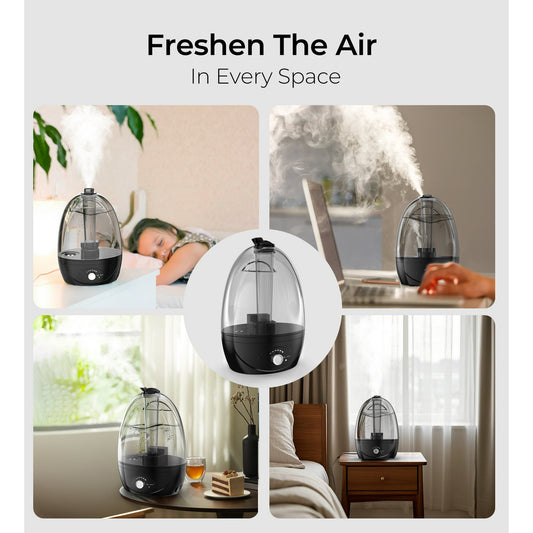 FUMMUX Cool Mist Humidifiers for Bedroom 3 L Water Tank Quiet Ultrasonic Air Vaporizer,Adjustable Mist Level,Easy to Clean, Black