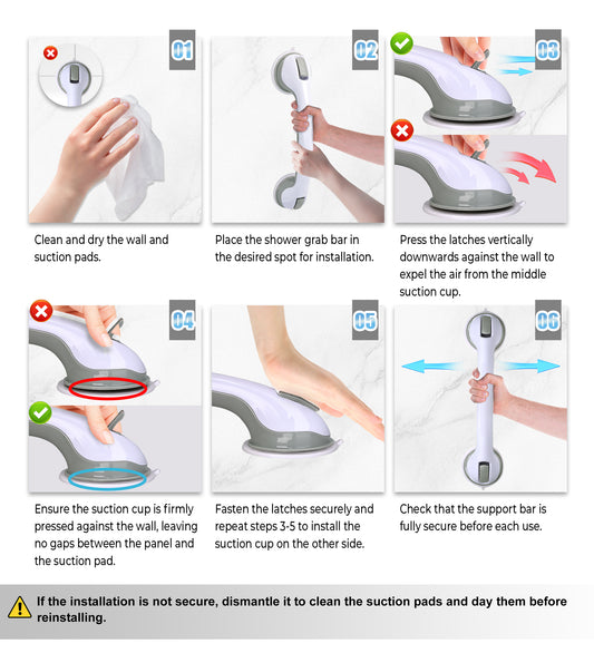 Hodvit 2 Pack Shower Grab Bars, Bathroom Shower Handles with Strong Suction Cup Grip for Seniors,Handle Carries 200lbs (16 inch)