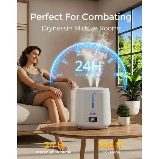 Lairy 5L Cool Mist Humidifier for Large Room, Top-Fill Humidifiers, Essential Oil Aroma Pad Tray, Quiet Ultrasonic Humidifier for Home