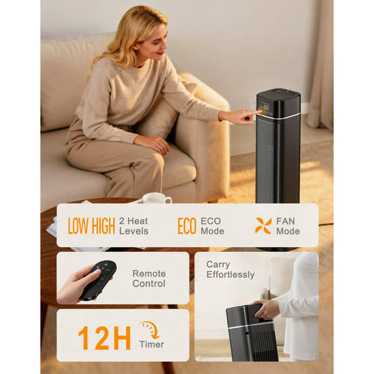 Lairy 24inch Space Heater for Indoor Use, 1500W Fast Electric Ceramic Tower Heaters with Thermostat,3 Modes, Eco, Black