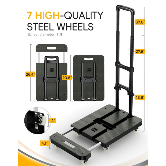 M BUDER Folding Hand Truck, 500 LBS Heavy Duty Dolly Cart, Utility Platform Cart with 6 Wheels for Travel, House, Office, Shopping, Moving Use - Black Folded Size is 11.8 x 17.7”