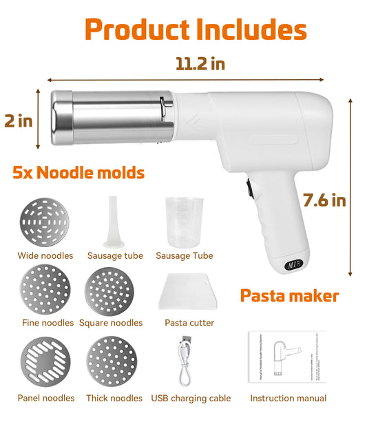M Buder Electric Pasta Maker, Automatic Cordless Pasta Machine, Homemade Noodle Maker for Kitchen,5 Replaceable Stainless Trays, Cutting Machine