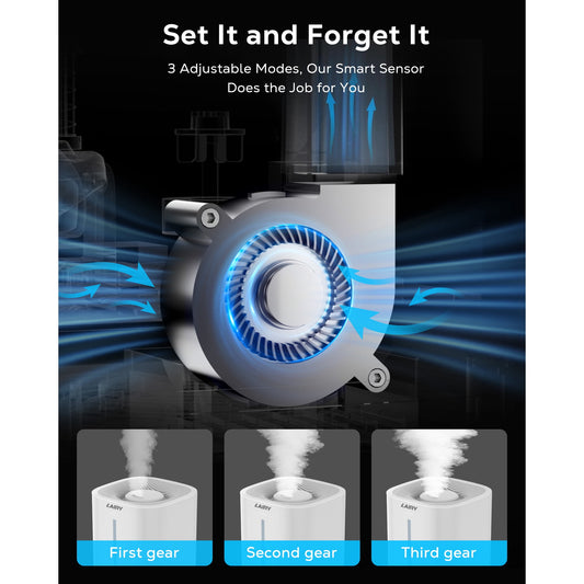 Lairy 5L Humidifiers for Bedroom, Smart Cool Mist for Large Room, 8H Timer Quiet Runtime for Baby, Plant, Black