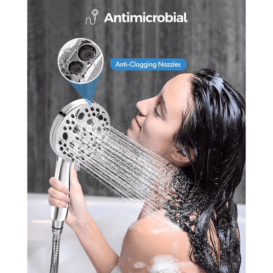 NFTIGB High Pressure 10 Mode Handheld Shower Head with 5 ft Stainless Steel Hose, Showerhead for Bathroom