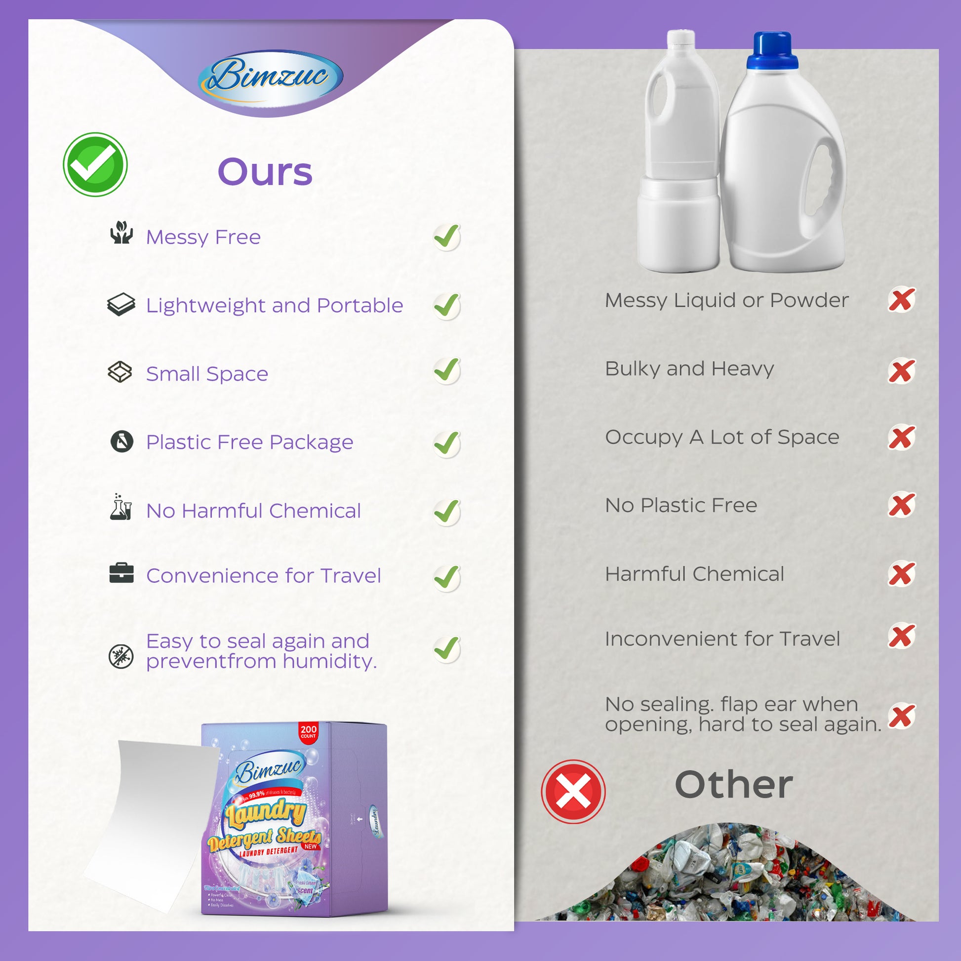 - Eco-Friendly and Plastic-Free: Made with biodegradable ingredients and packaged in recyclable, plastic-free boxes, BIMZUC Laundry Sheets are an environmentally responsible choice. Help reduce plastic waste while keeping your laundry routine simple and sustainable.