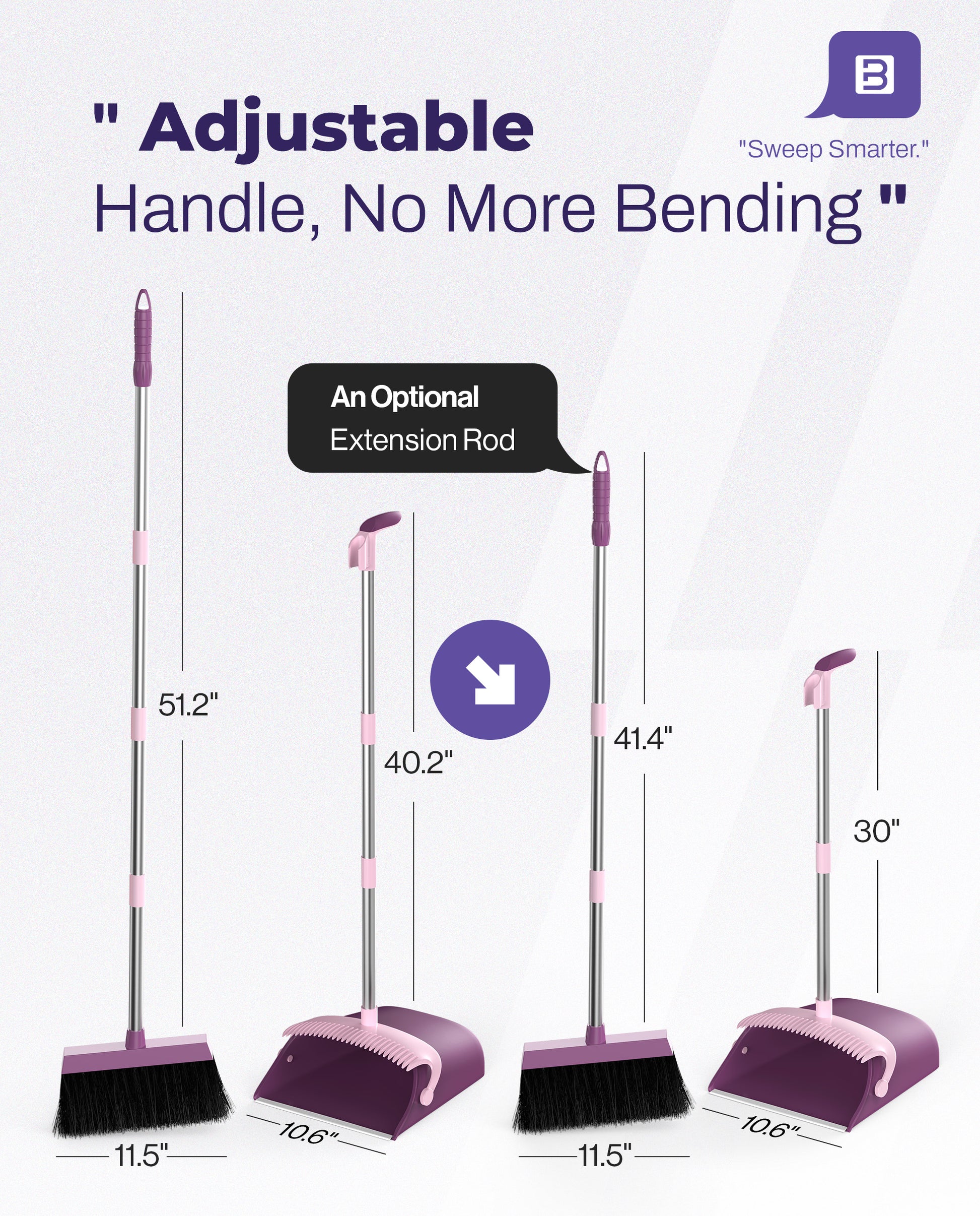 BIMZUC Broom and Dustpan Set for Home, 51" Long Handle Dustpan & Broom W/Comb, Purple Cleaning Kit
