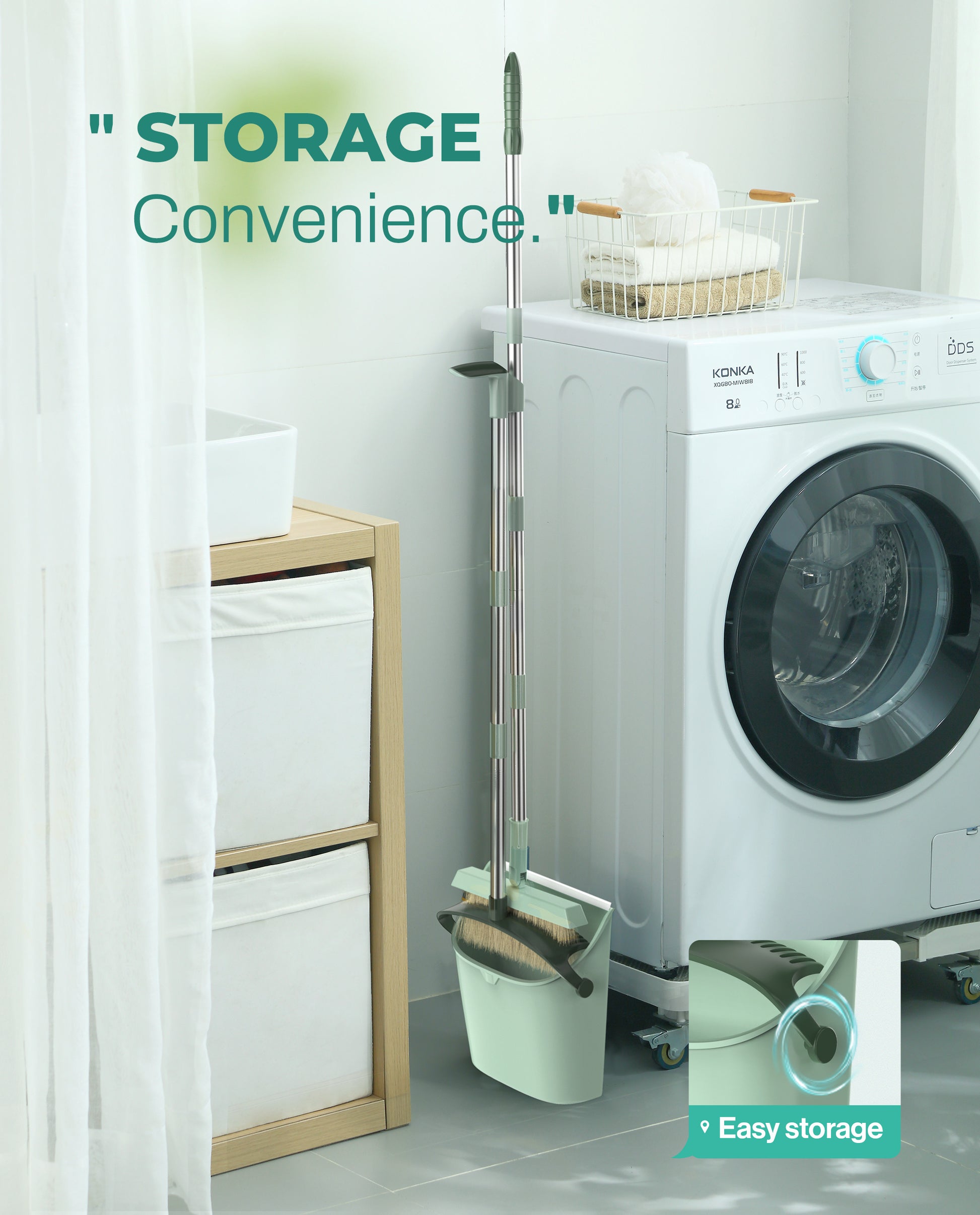 - Easy Storage with Folding Design:When you’re done sweeping, storing the broom and dustpan set is a breeze. The dustpan features a foldable design that flattens for compact storage and stands upright on its own. Additionally, the handles include convenient holes, allowing you to easily hang the set on the wall for quick access and space-saving organization.