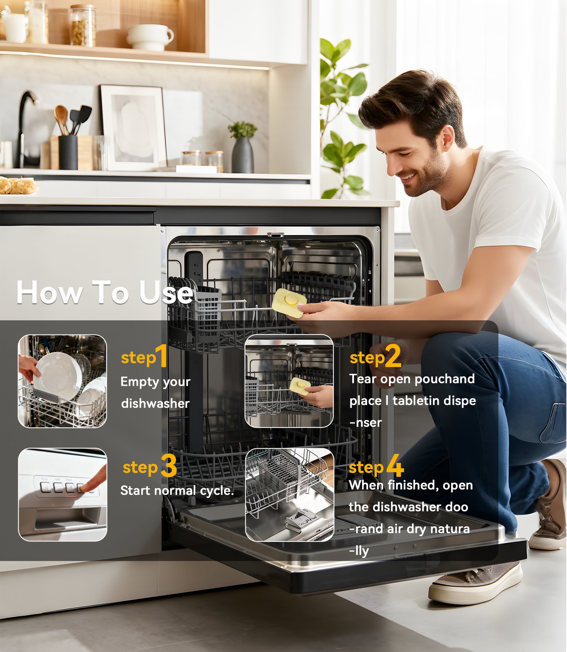 - Extend Dishwasher Lifespan: Regular use of dishwasher cleaning tablets prevents clogs, buildup, and odors, prolonging your dishwasher's lifespan and ensuring efficient operation.