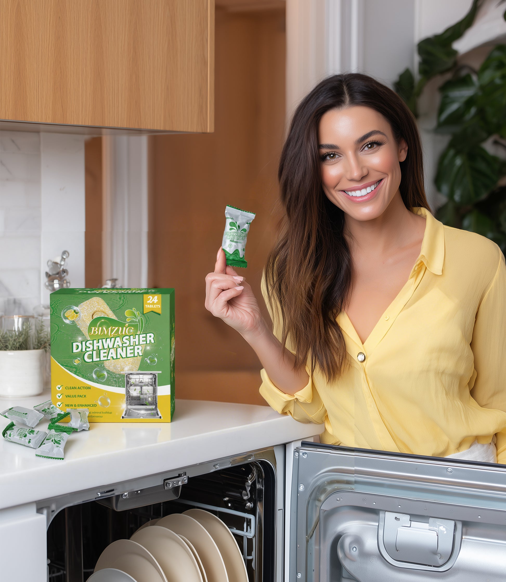 BIMZUC Dishwasher Cleaning Tablets, 24 tablets, provide enough for a year's supply or long-term use. BIMZUC dishwasher cleaning tablets enhance grease-cutting power tailored to household dining habits, deeply removing stubborn grime and oil residue from your dishwasher. They help prevent clogs in spray arms, pipes, and valves, extending your dishwasher's lifespan. Use once or twice monthly to keep your dishwasher sparkling clean. Individually wrapped for easy portioning, eliminating the inaccuracies of traditional scoops. One tablet per load ensures simple, convenient, and intelligent cleaning. The 24-tablet large-capacity pack offers exceptional value, reducing the need for frequent repurchases to save both money and hassle.