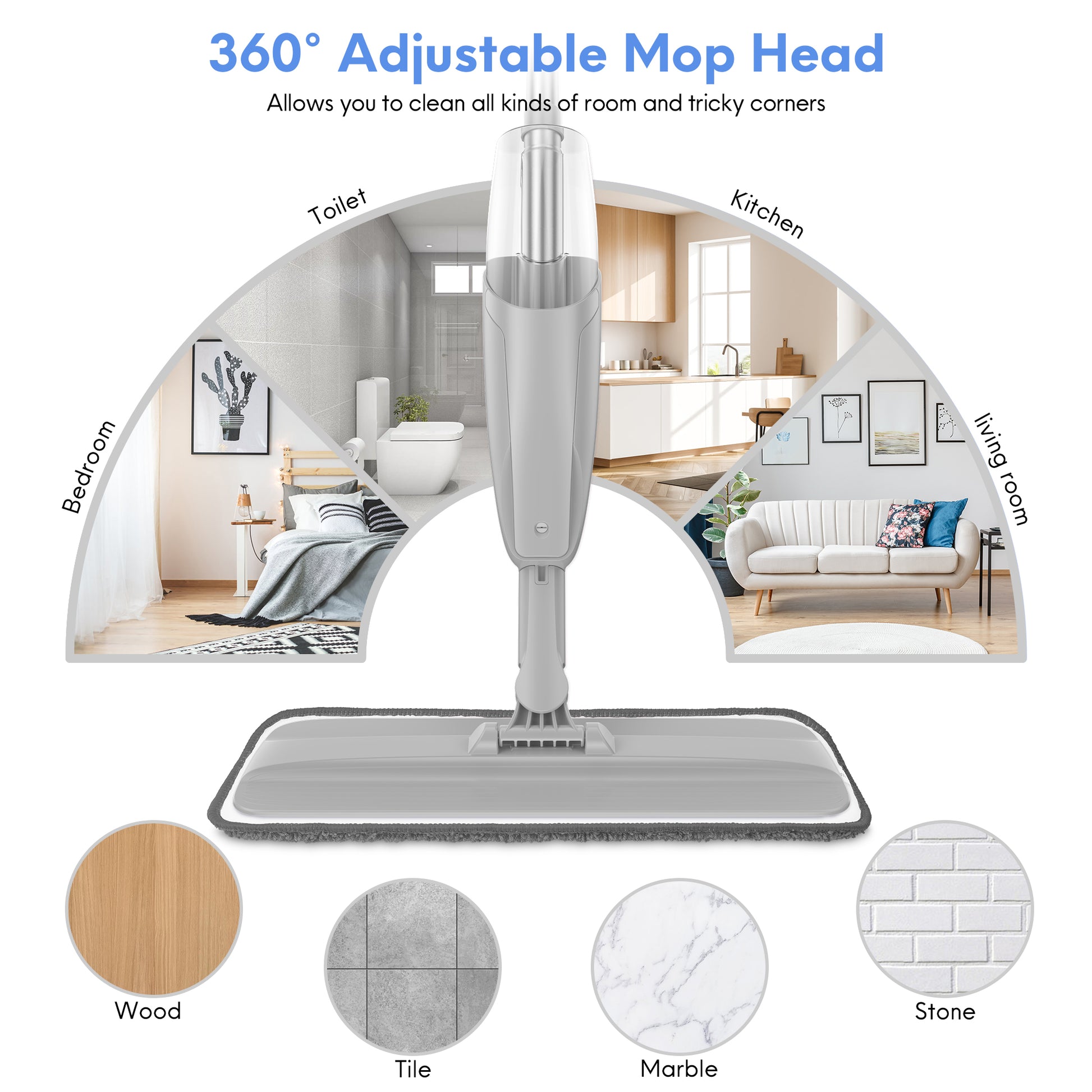 - Three Free Mop Pads Replacement: We understand the hassle of cleaning mop pads during your cleaning sessions. That's why our spray mop set comes with three intimate microfiber mop pads. These pads are super absorbent and efficiently grasp dirt, dust, and hair. Plus, they are machine washable and reusable, eliminating the need for disposable cleaning pads and offering you an economical choice for maintaining your floors.