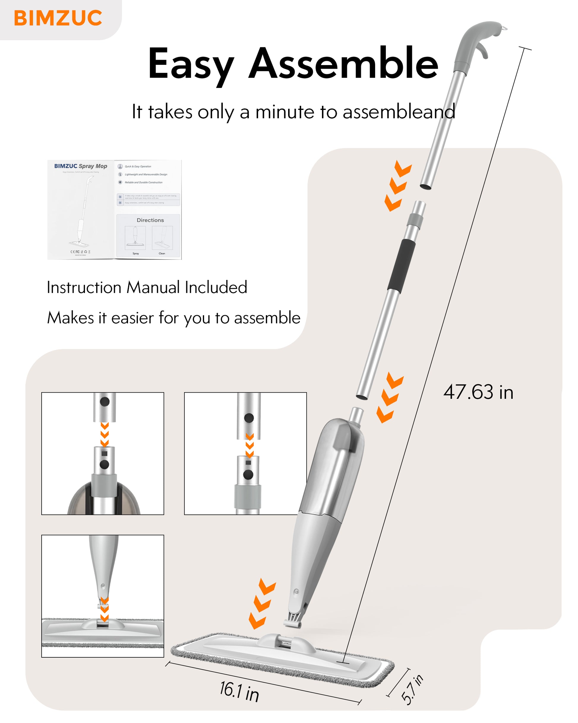 - 27 oz Large Capacity Water Tank: The BIMZUC spray mop features an extra large 27 oz tank, reducing frequent refills so you can clean more area in one go no more stopping mid task!