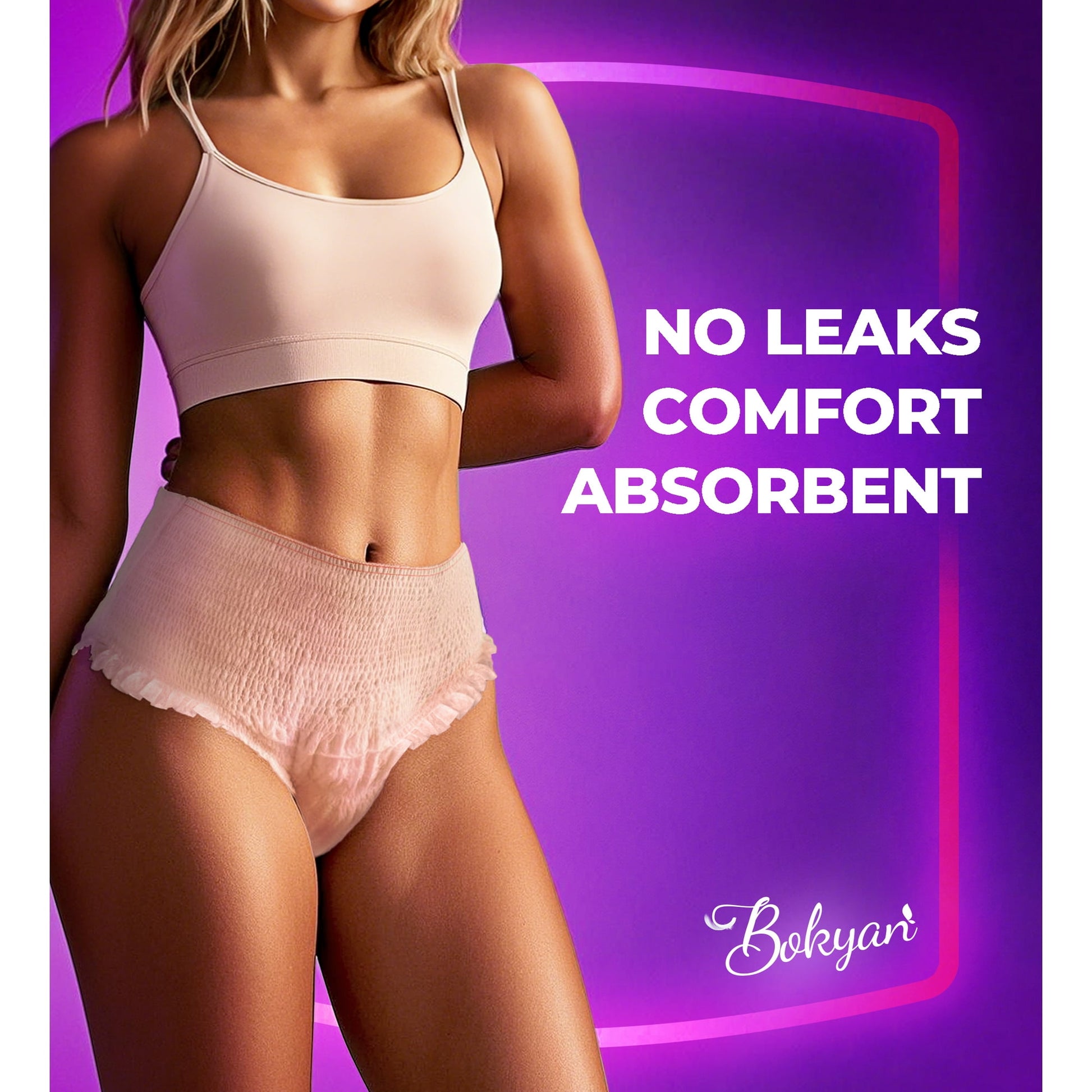 Bokyan Adult Incontinence Underwear for Women,Postpartum Bladder Leak Underwear,Disposable,L,18 Ct