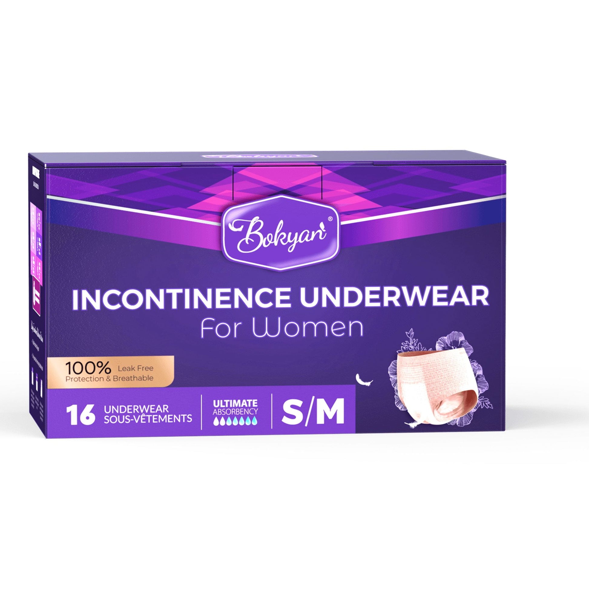 Bokyan Adult Incontinence Underwear for Women,Postpartum Bladder Leak Underwear,Disposable,S/M,16 Ct