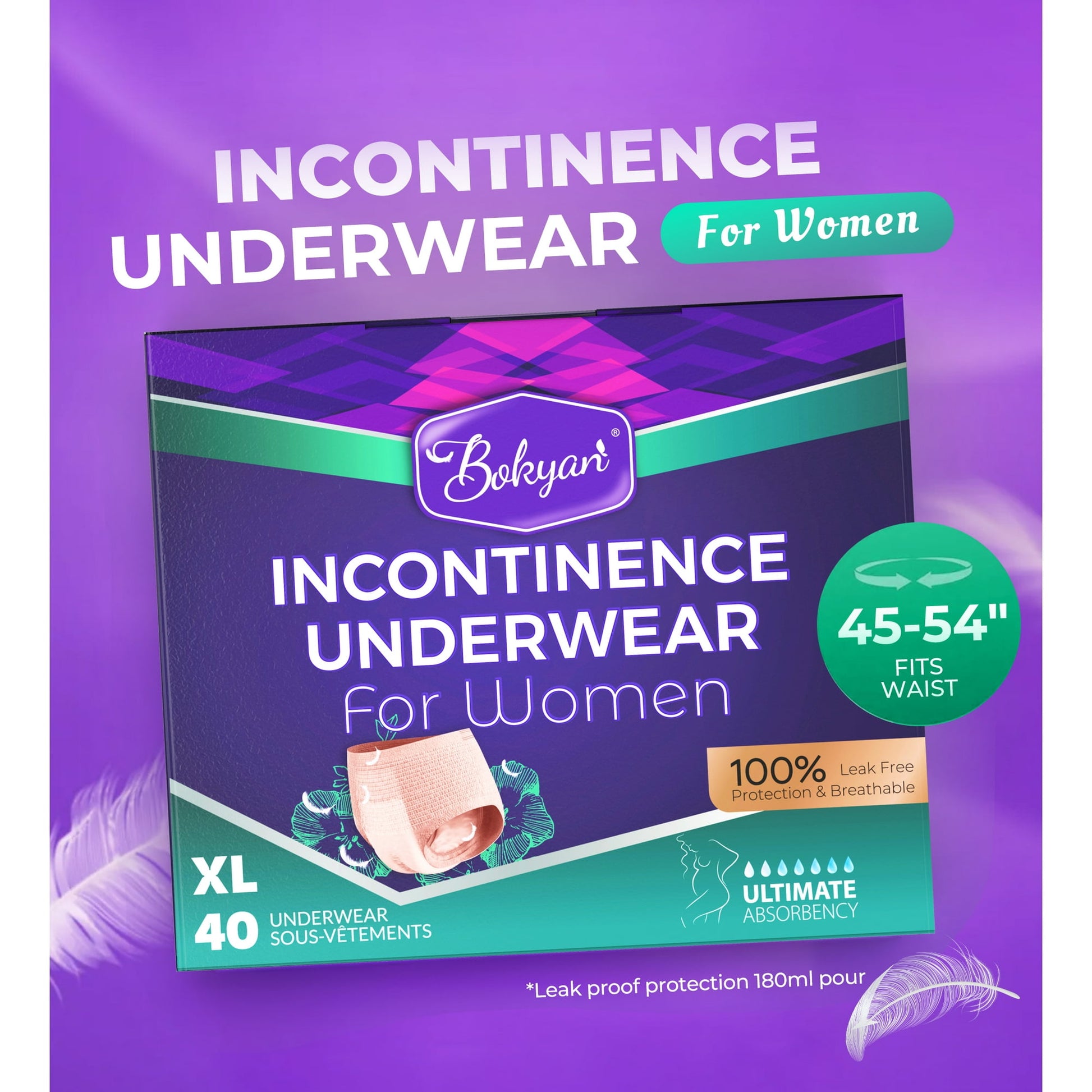 Bokyan Adult Incontinence Underwear for Women,Postpartum Bladder Leak Underwear,Disposable,XL,40 Ct