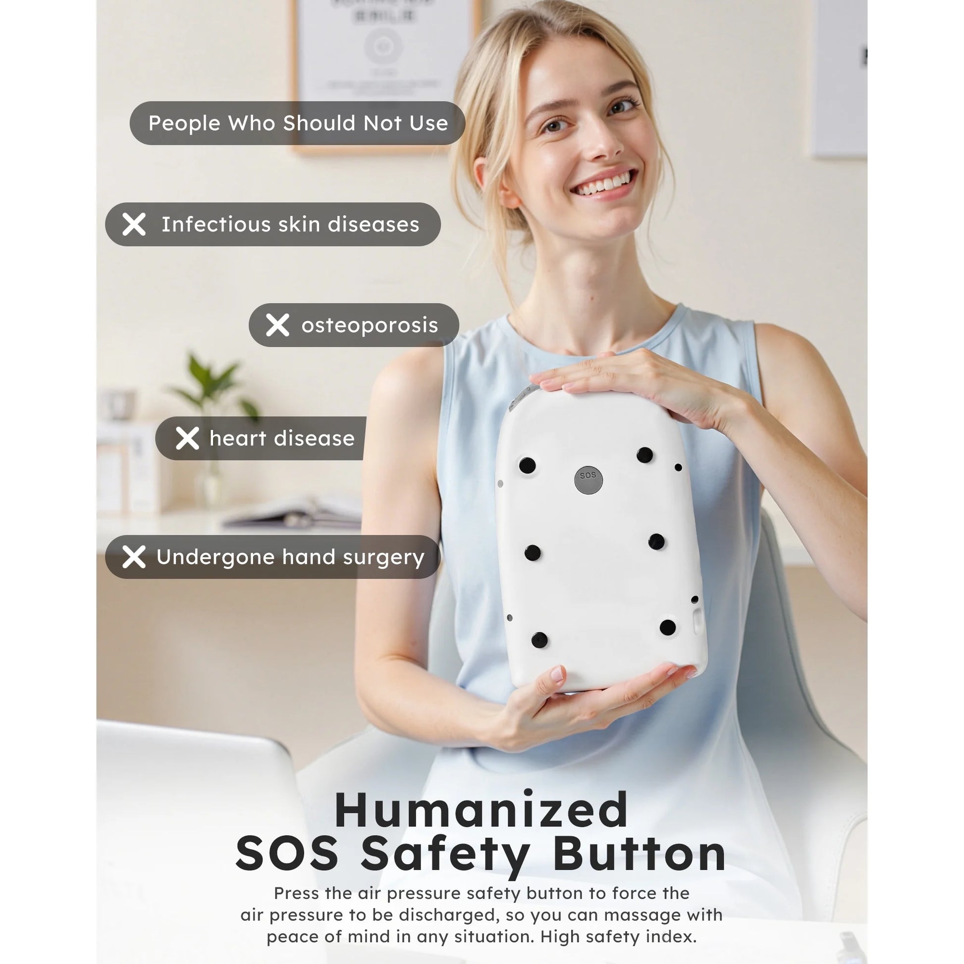 - Enjoy a soothing and rejuvenating hand massage with rhythmic air compression, kneading, and vibration that works on fingers, palms, and wrists to promote deep relaxation.