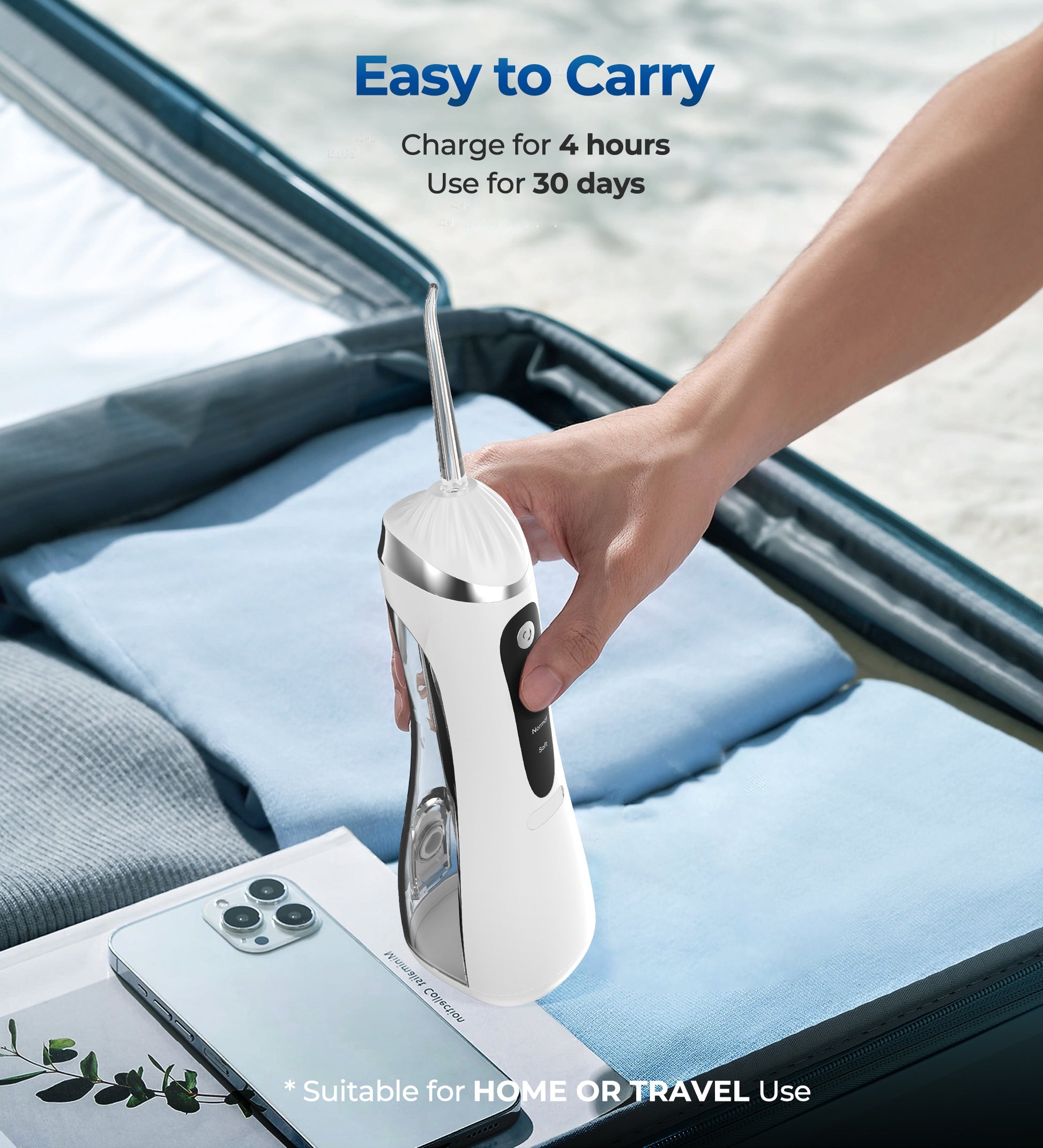 - Customizable Cleaning Experience: Featuring three adjustable modes—Powerful, Normal, and Gentle—this flosser allows you to tailor your water flossing experience to meet your specific needs, whether for sensitive gums or robust cleaning.