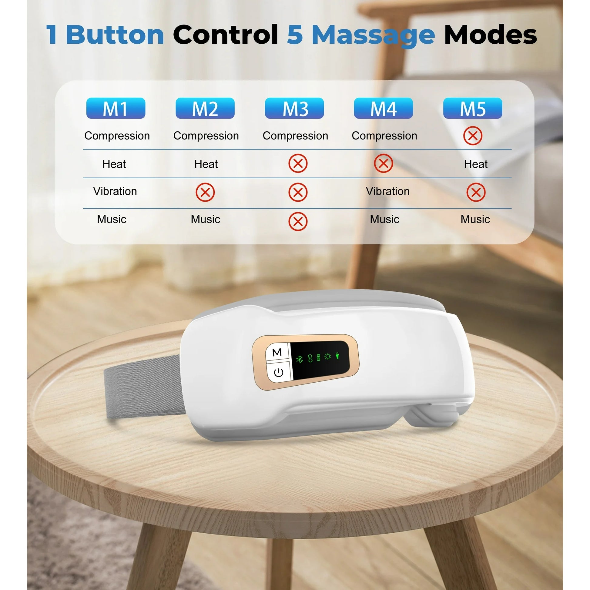 - [Multifunctional Design]: One button operation, 5 modes, providing different massage experiences for the eyes. Supports Bluetooth connection, allowing you to play your favorite music by connecting to Bluetooth.
