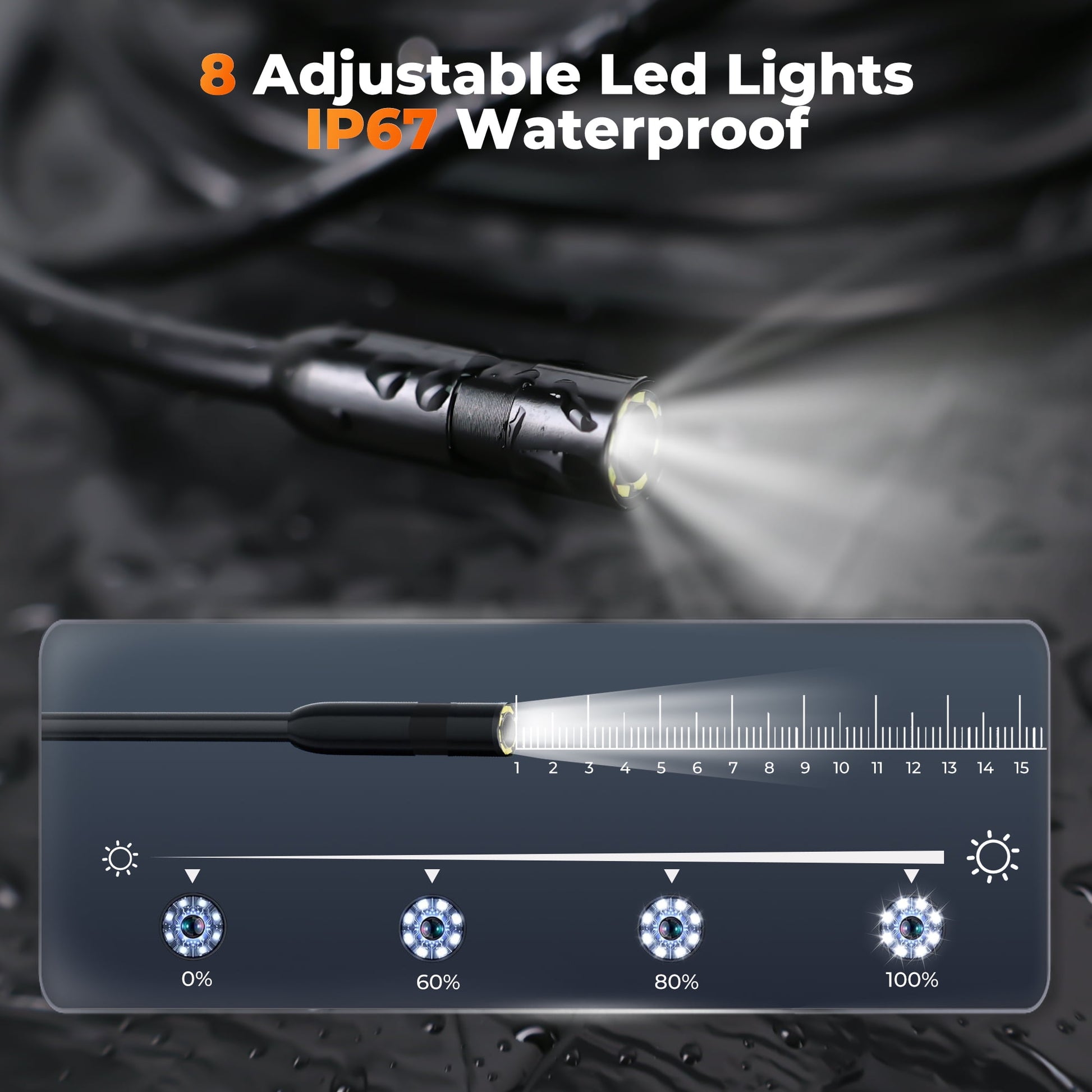 - Clear Imaging with LED Lights – 8 adjustable LED lights ensure visibility in dark spaces. Best observation distance: 1.5–5 inches.