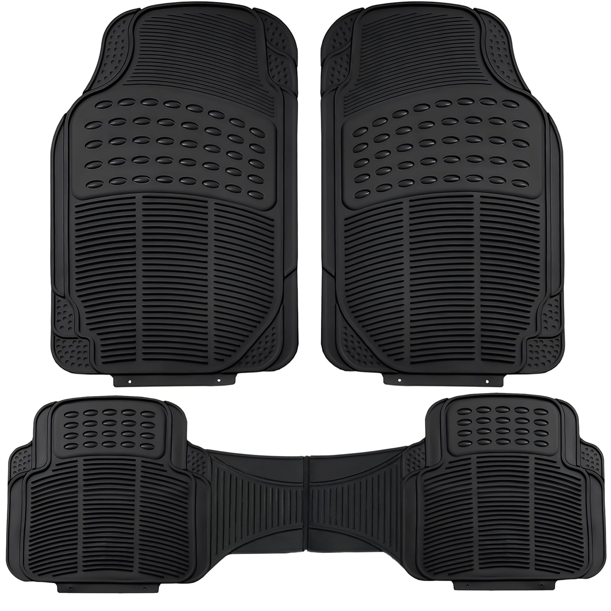Floray 3-Piece All Weather Solid Rubber Trimmable Front and Rear Universal Car Van Truck Floor Mats Set