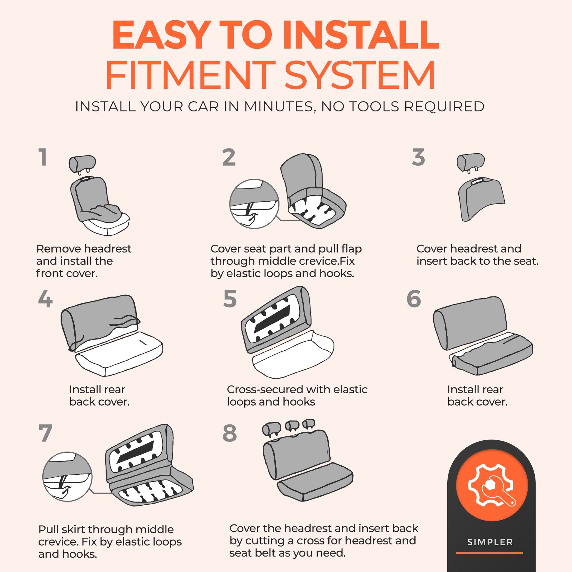 Comes with front and rear seat covers along with matching headrest covers for a cohesive look.