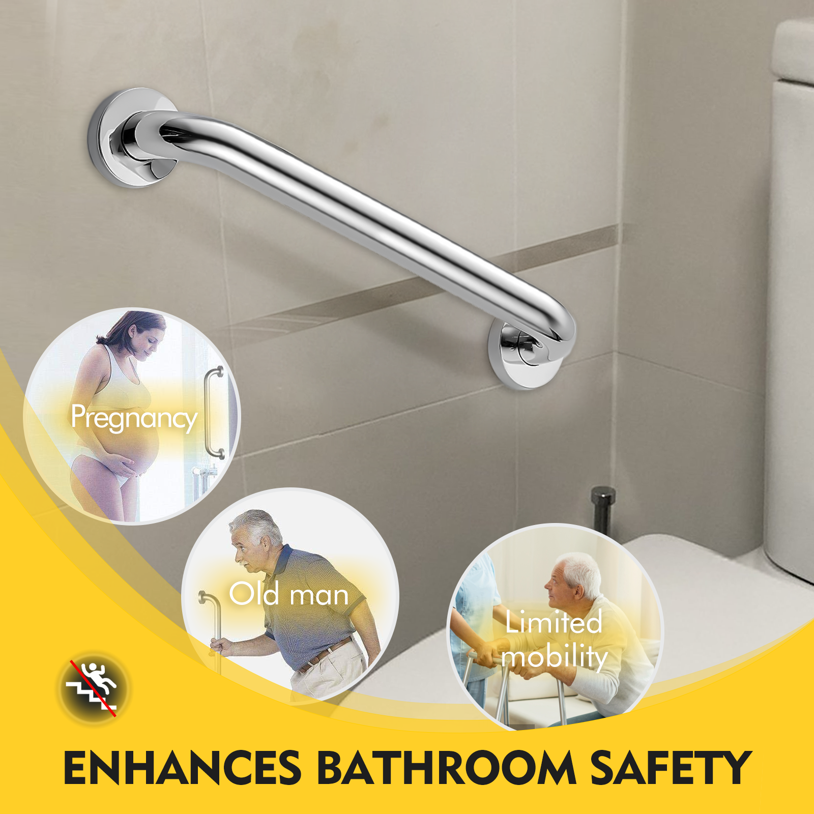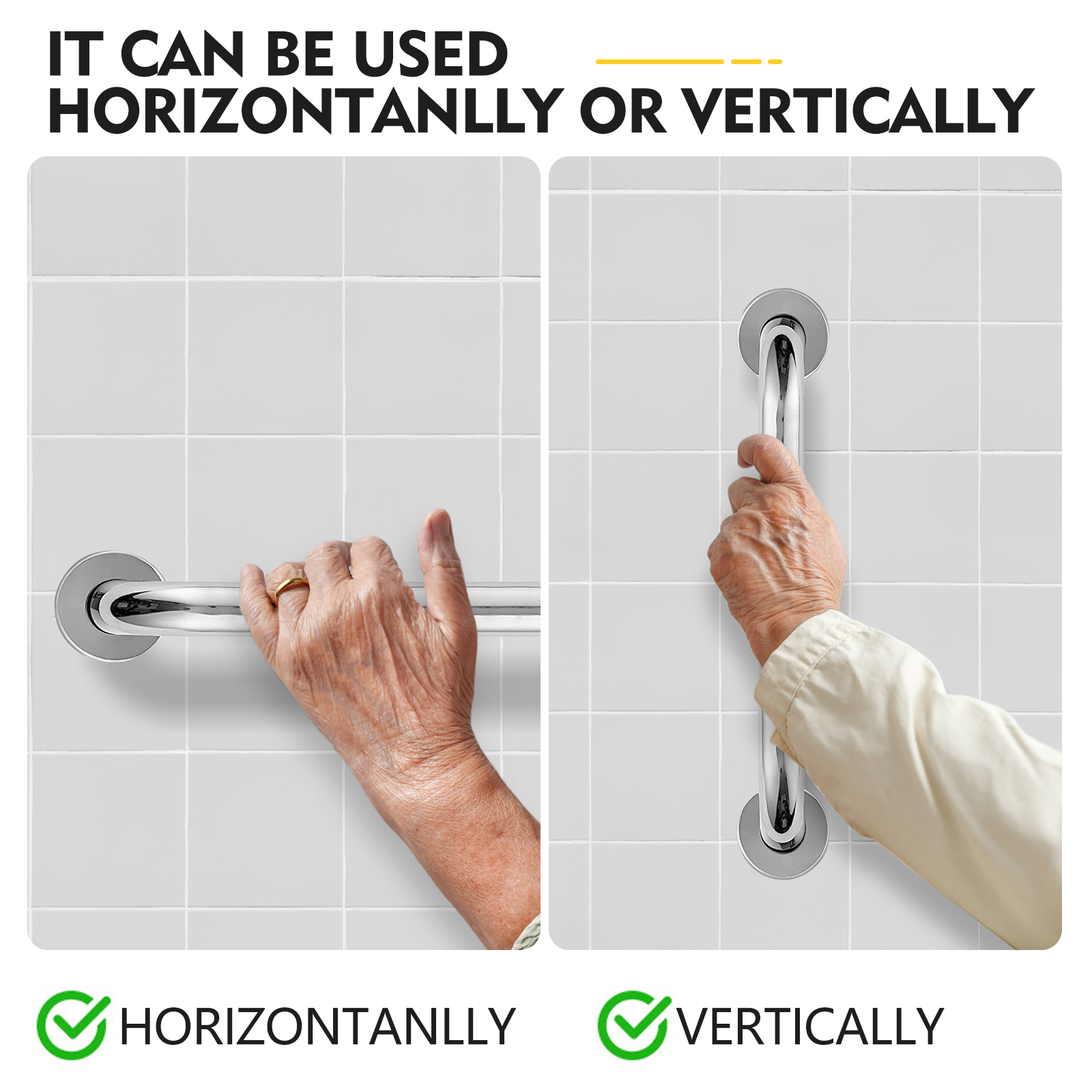 - Designed to meet ADA standards, this grab bar reduces slip-and-fall risks by 80%*. Perfect for seniors, kids, and individuals with mobility challenges, it provides reliable support in showers, bathtubs, and near toilets – making your bathroom safer for everyone.