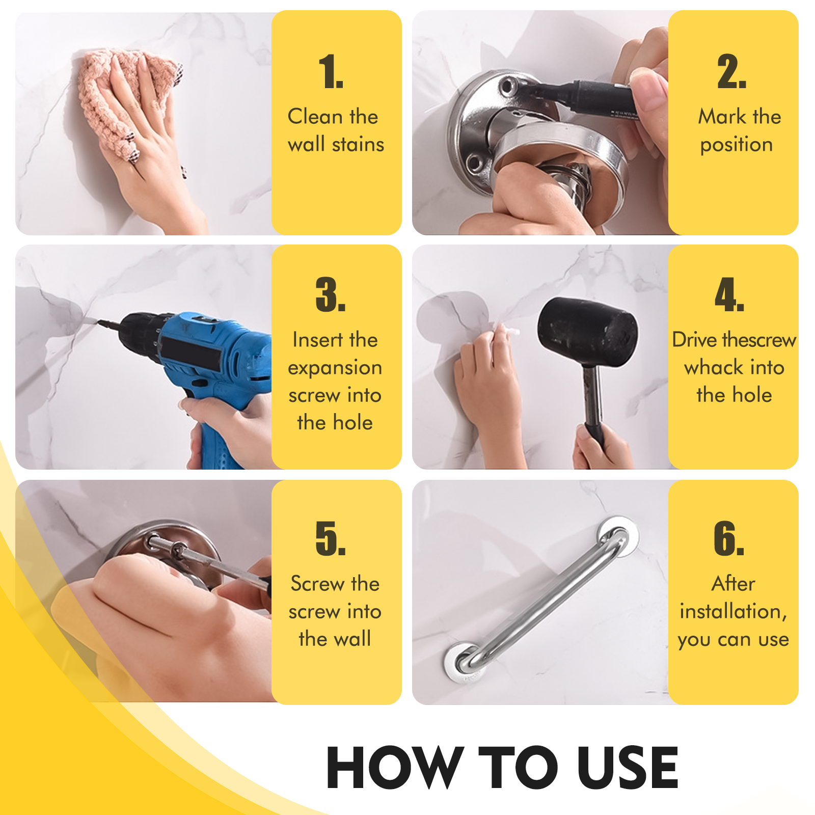- Made with medical-grade 304 stainless steel, our shower handle is built to last a lifetime. With a 500lb weight capacity and rust-resistant finish, it withstands daily use, humidity, and harsh cleaning chemicals – ensuring your safety for years to come.