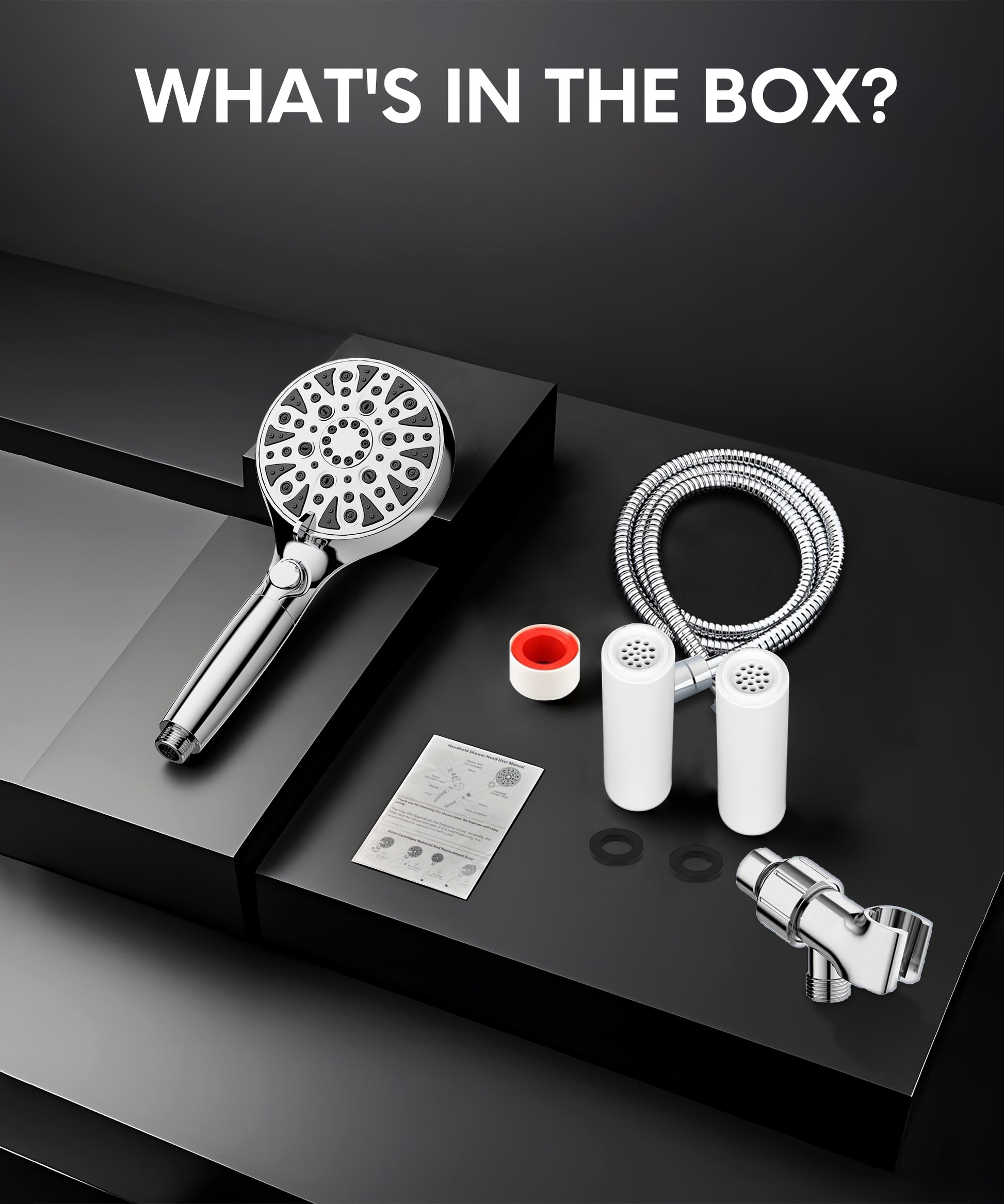 - Dual Filter Showerhead: Eliminates 99% of chlorine to reduce dryness and irritation to skin and hair. This showerhead softens hard water to prevent skin and hair damage and features dual filters to remove a wide range of impurities.