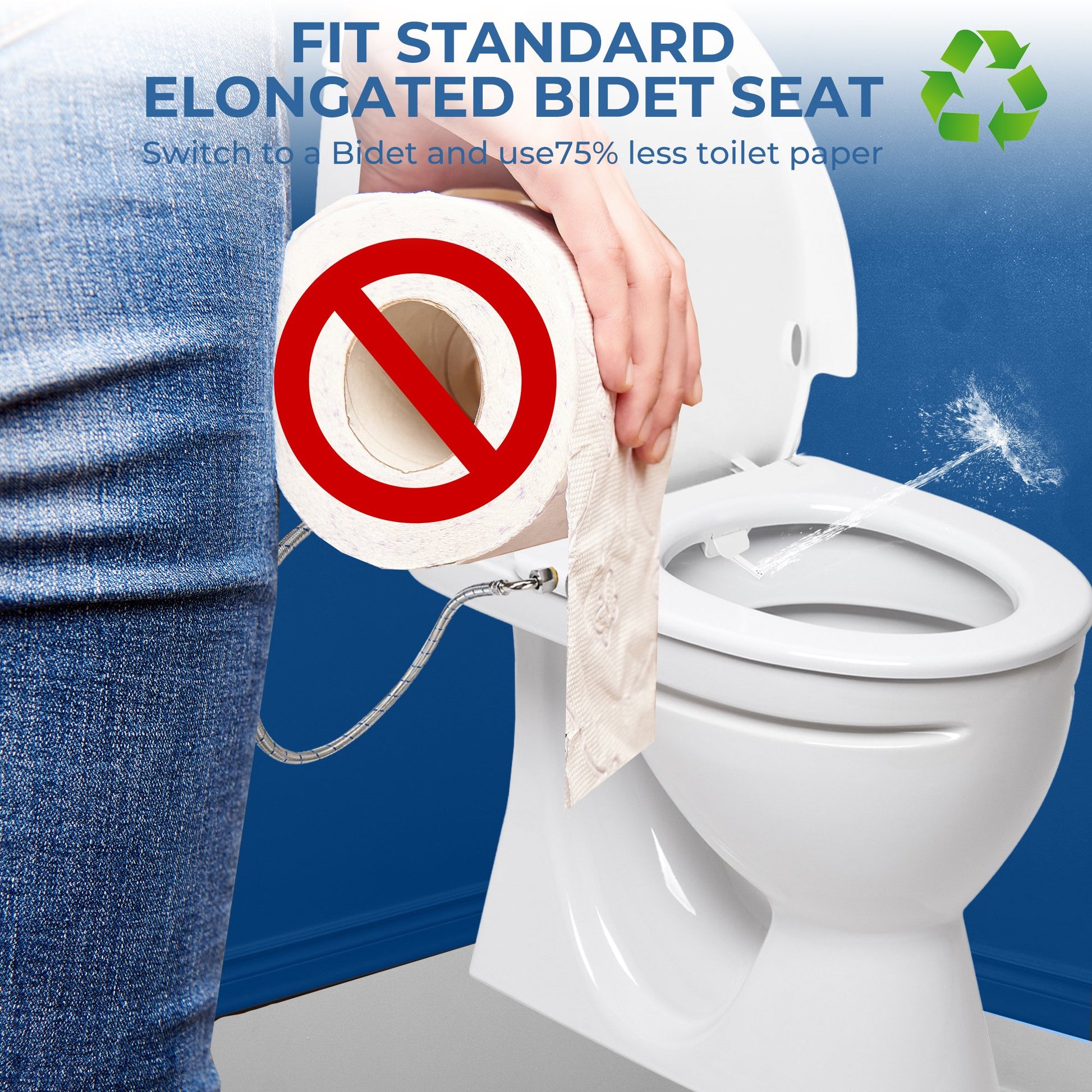 HODVIT non-electric bidet toilet seat for better hygiene, upgrade your bathroom life. HODVIT's non-electric bidet toilet seat offers a refreshing and hygienic cleaning experience without toilet paper. Designed for elongated toilets, this easy-to-install bidet is equipped with adjustable water pressure, dual nozzles (front and back flush) for comfort. The soft-drop cover, ergonomic design and stylish chrome knobs add a touch of modernity to any bathroom. No batteries or electricity required, just pure water-based cleaning. Installs in minutes and enjoys a greener, cleaner way to refresh. HODVIT - the perfect combination of hygiene and convenience!