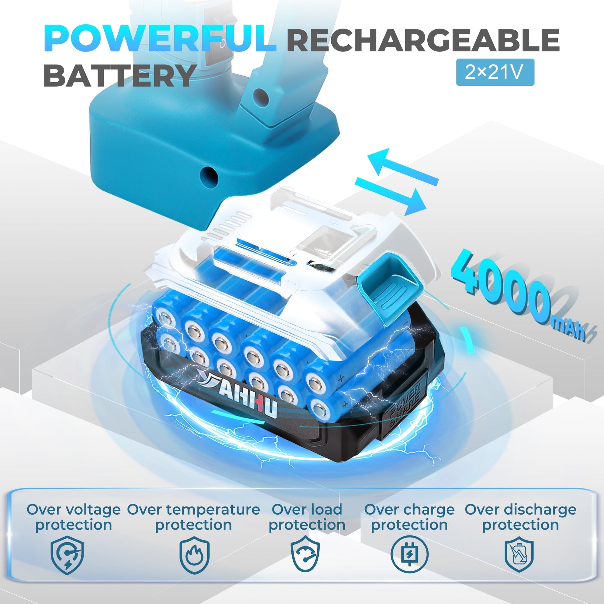 - Long Lasting Battery and Cordless Convenience: Equipped with two 2000 mAh rechargeable lithium batteries for extended working time. The cordless design provides greater flexibility and mobility and is suitable for outdoor use in gardens yards farms and similar environments without requiring a power outlet.