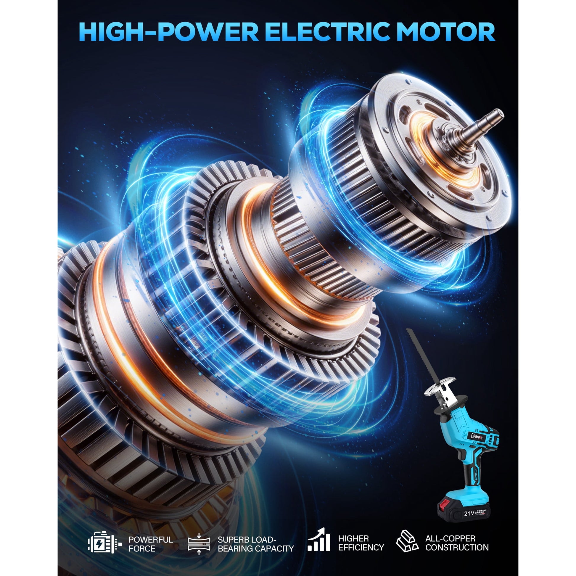 - Complete Accessory Kit: Includes saw body, two 21V 2000mAh batteries, charger, eight saw blades, goggles, gloves, storage box and English manual, providing everything you need for efficient cutting.