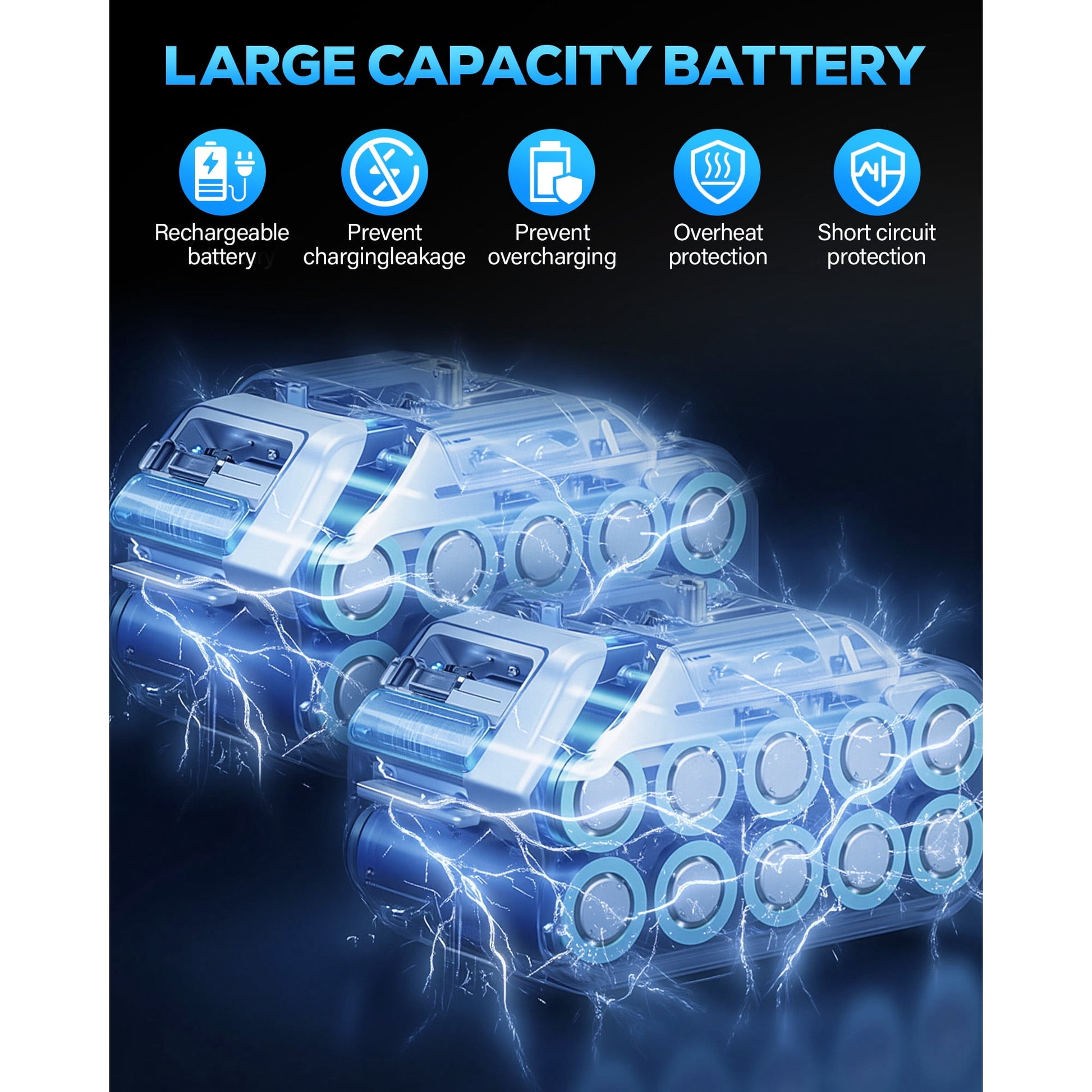 - Two 21V 2000mAh Batteries & Replaceable Blades: Equipped with two 21V 2000mAh rechargeable batteries, it can be used for 25 to 30 minutes per charge and supports more than 400 cycles. The one-handed design is easy to operate and the quick-change blade system ensures fast replacement.