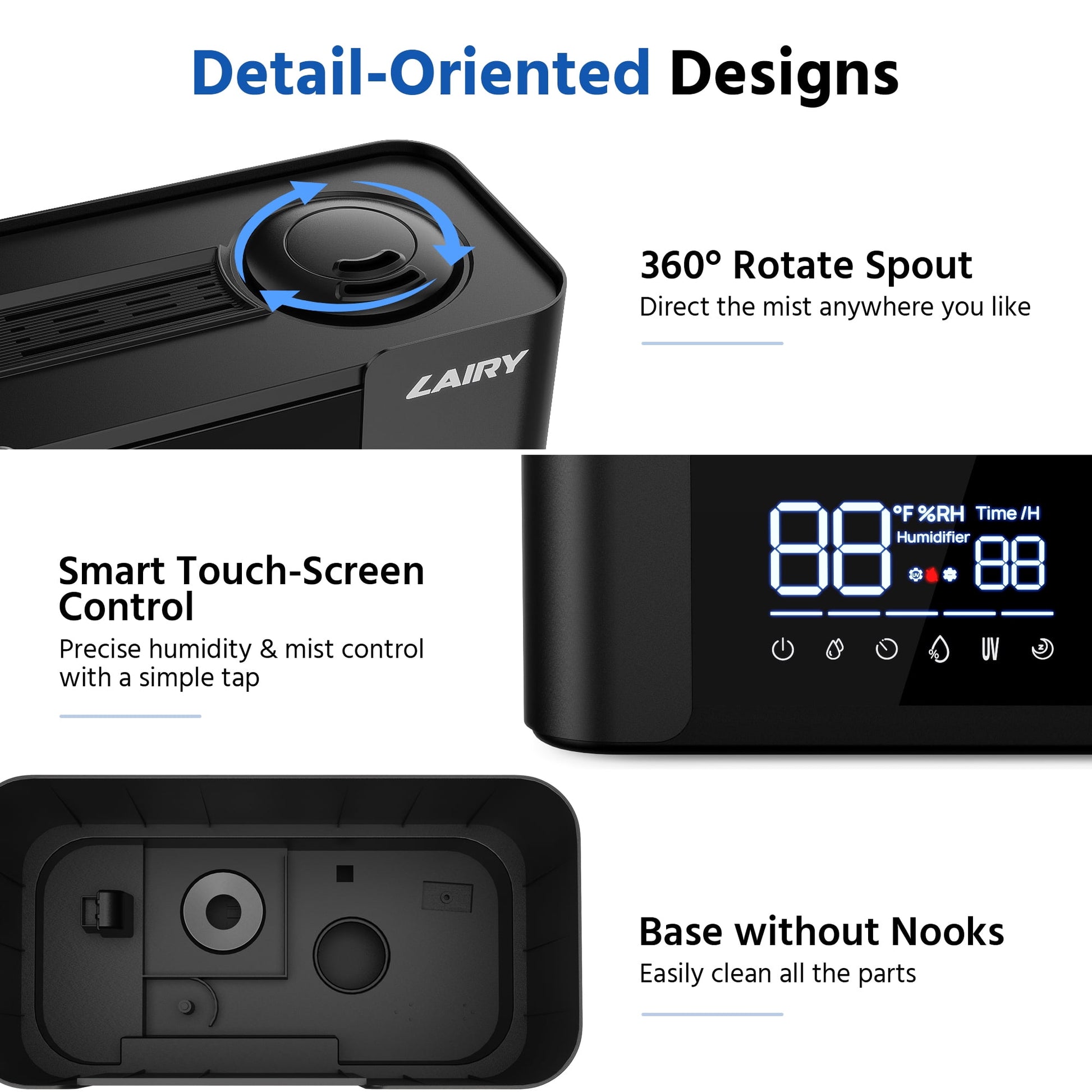 Lairy 5L Humidifiers for Bedroom, Smart Cool Mist for Large Room, 8H Timer Quiet Runtime for Baby, Plant, Black